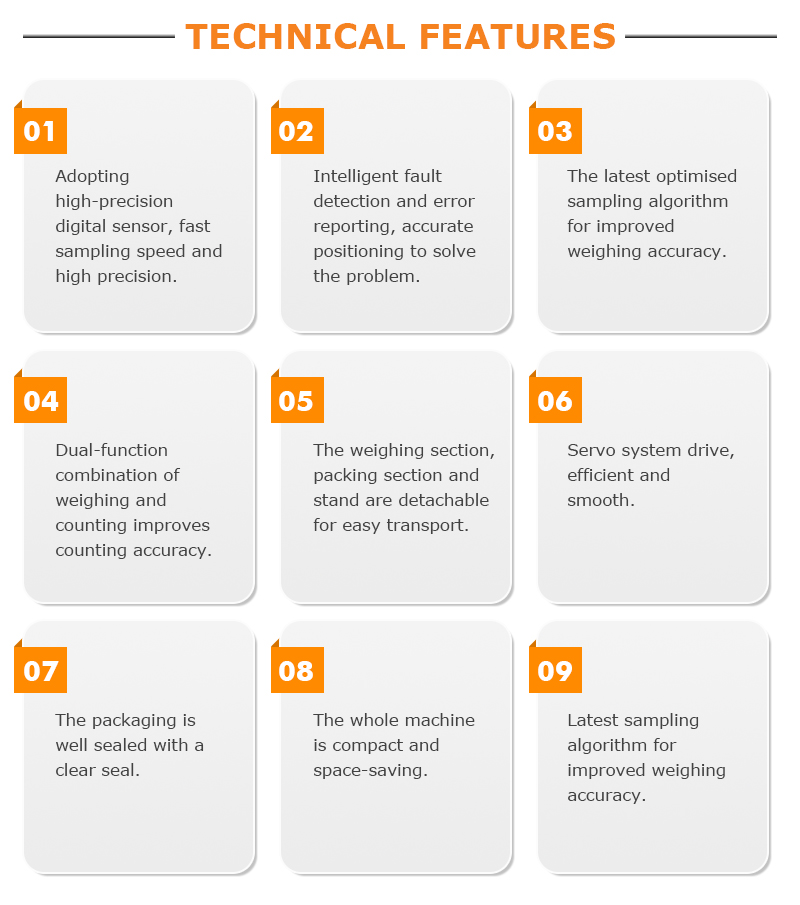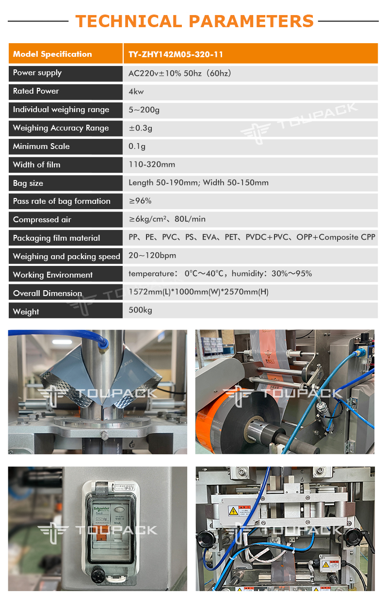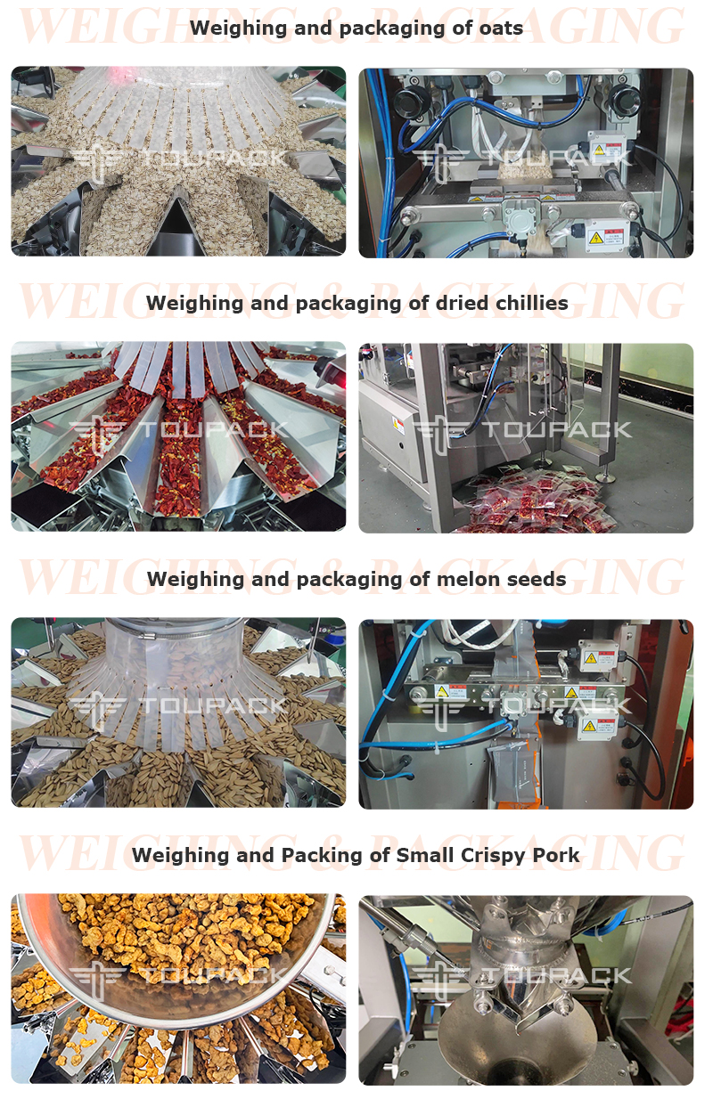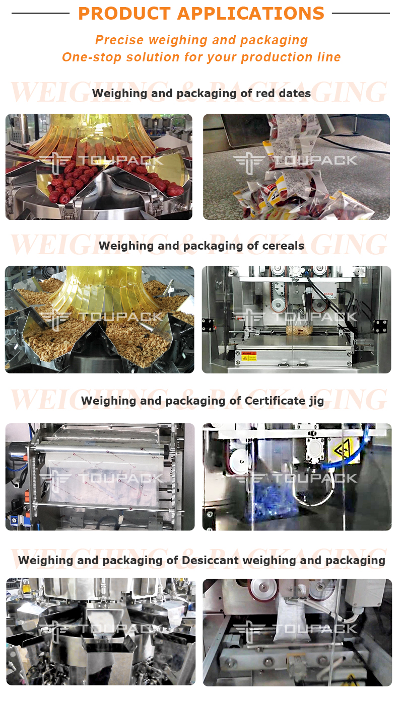 This machine is suitable for automatic weighing and packing of granular, short strip, block, ball shape, powder and other materials.